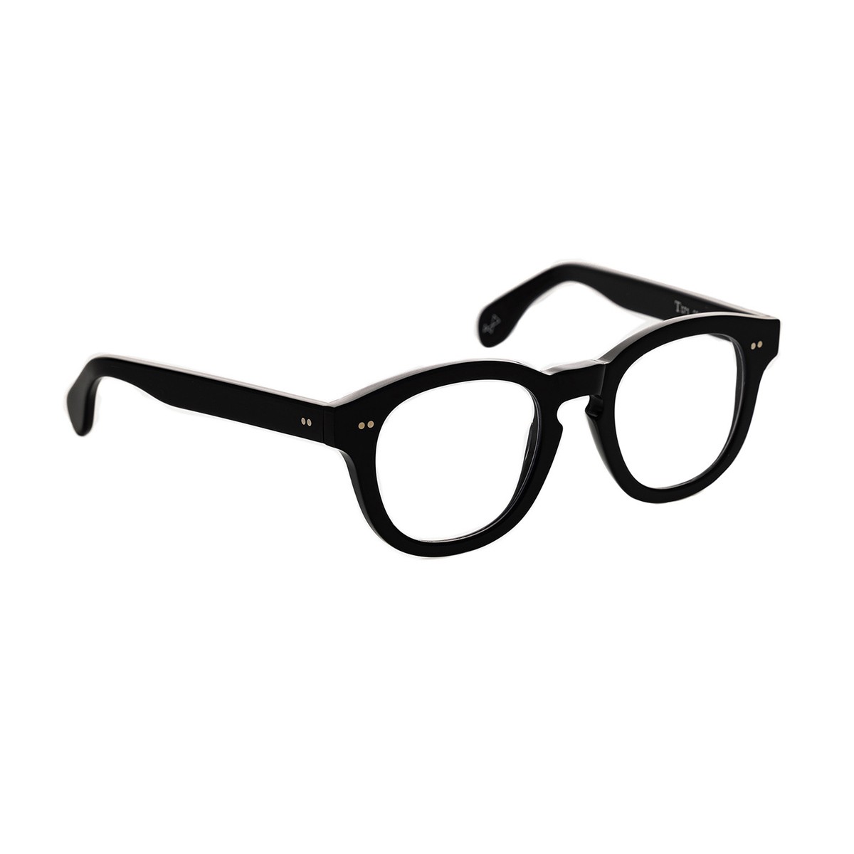 Costantino Toffoli is an Italian company that produces handcrafted eyewear made from cellulose acetate, combining advanced technology with traditional craftsmanship. Founded in the 1990s in the Cadore eyewear district, it offers collections ranging from classic to vintage models, featuring a distinctive style and refined details.The T071 model, with its retro charm, is a bold and distinctive eyewear piece characterized by a square shape with defined profiles. The black acetate frame is enhanced with metal rivets, adding a touch of artisanal elegance and sophistication to the design.