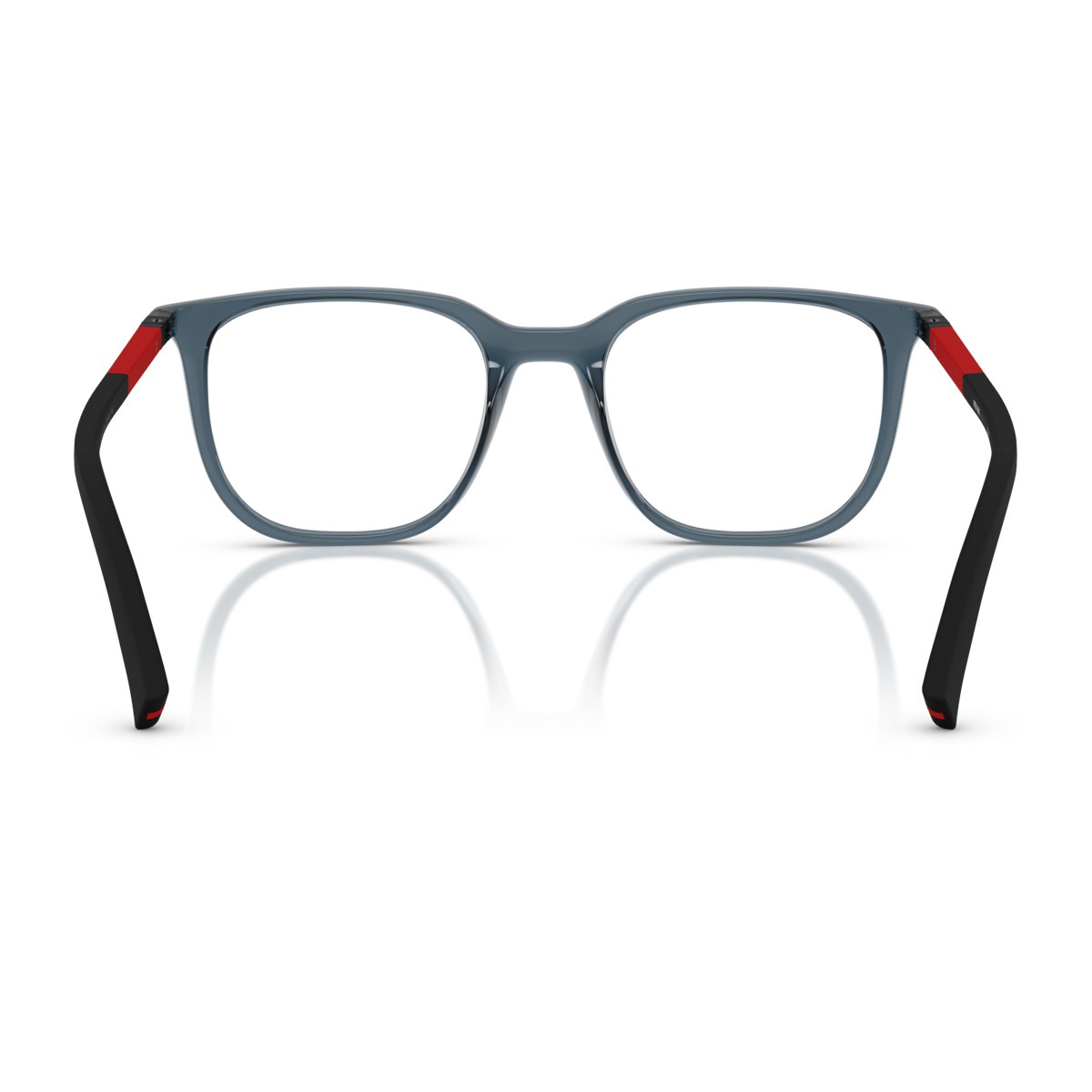 The PS 04RV optical model, a perfect balance between Italian elegance and practicality, redefines the concept of sophisticated, urban style by Prada Linea Rossa. Crafted from nylon fiber in transparent blue tones, the frame features a square shape. The temples are embellished with the iconic Prada Linea Rossa logo.