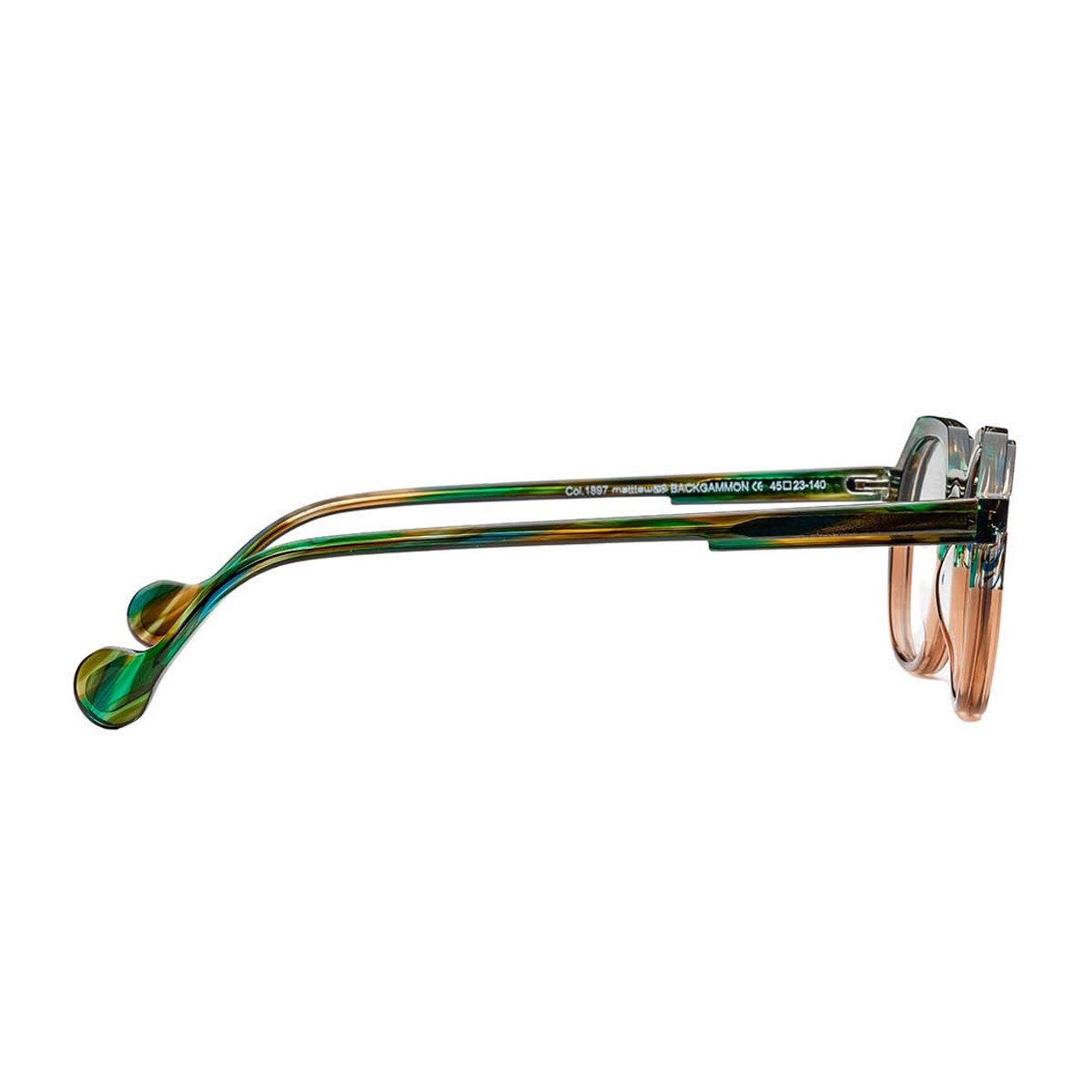 The Backgammon optical model by Matttew, a Belgian brand founded by Matthieu Duchêne renowned for its handcrafted frames made in France, embodies the maison’s creative and unconventional spirit.The green and brown patterned acetate frame stands out with its softened hexagonal shape, designed to enhance facial features with both personality and aesthetic balance. The lightweight temples with rounded end tips provide comfort and practicality, completing the design with an ironic and distinctive detail.