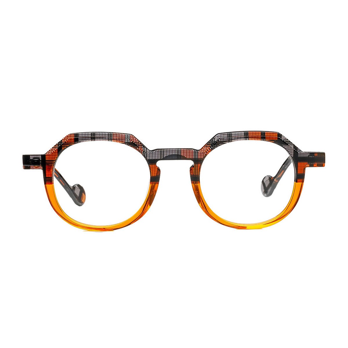 The Backgammon optical model by Matttew, a Belgian brand founded by Matthieu Duchêne renowned for its handcrafted frames made in France, perfectly reflects the maison’s creative and unconventional philosophy.The acetate frame with a black, grey, and orange check pattern stands out for its original graphic effect and softened hexagonal shape, designed to enhance facial features with both character and balance. The slim, lightweight temples ensure comfort and practicality, making it perfect for everyday wear without compromising on style.