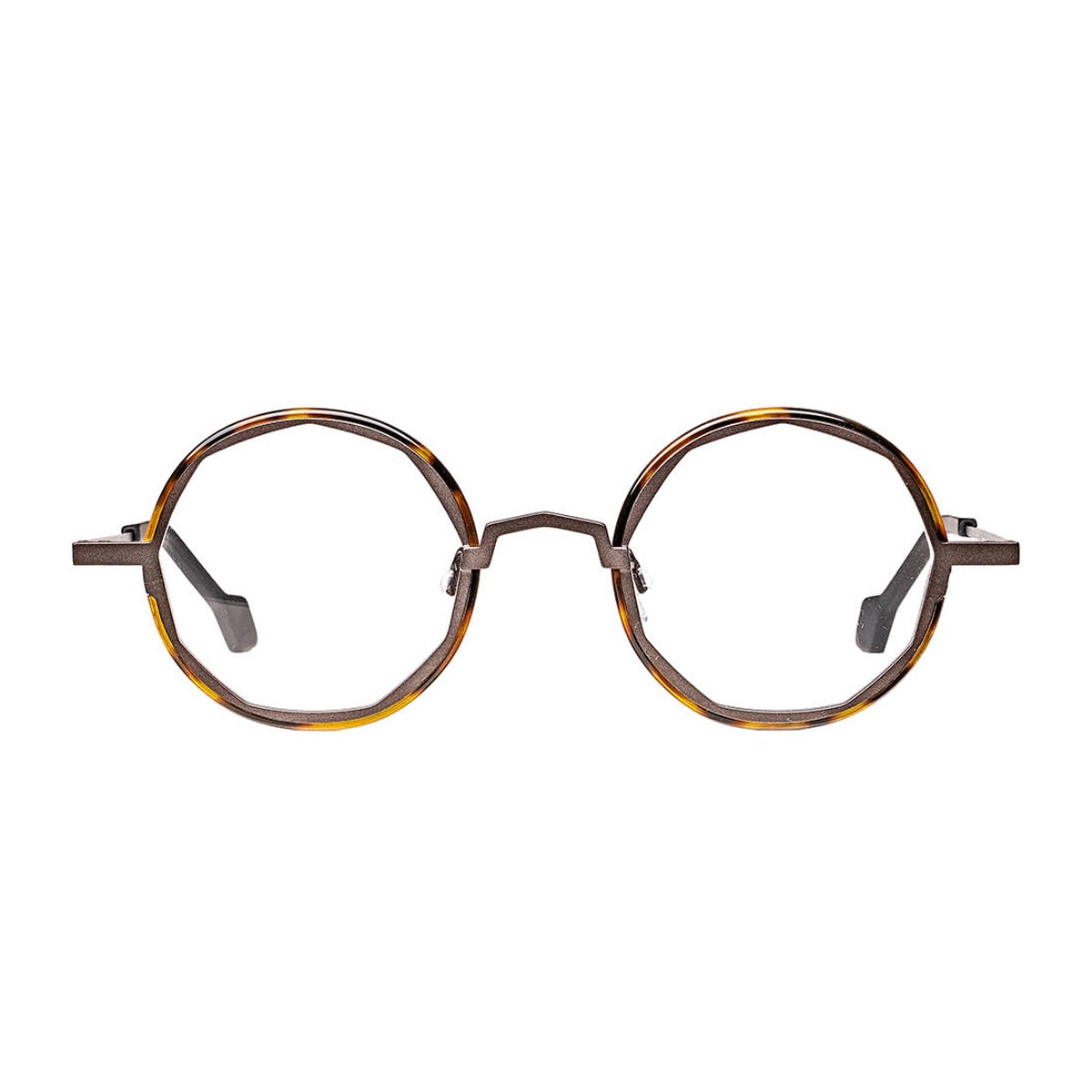 The Comma model by Matttew, a Belgian brand founded by Matthieu Duchêne and renowned for its handcrafted frames made in France, is a bold statement of unique style.The round titanium frame in elegant grey with refined tortoiseshell accents transforms into an original octagonal structure, creating an exclusive balance between innovation and tradition. Geometric lines and the sculpted bridge enhance facial features with character and personality.Slim stainless-steel temples complete the design, ensuring lightness, stability, and outstanding comfort even during prolonged daily wear.