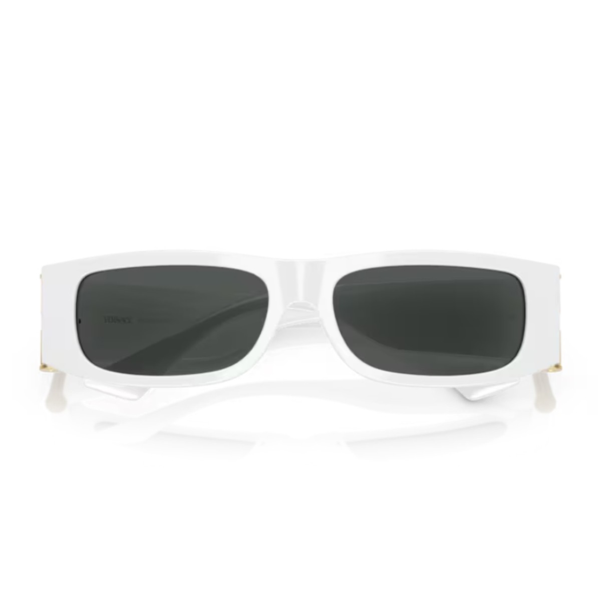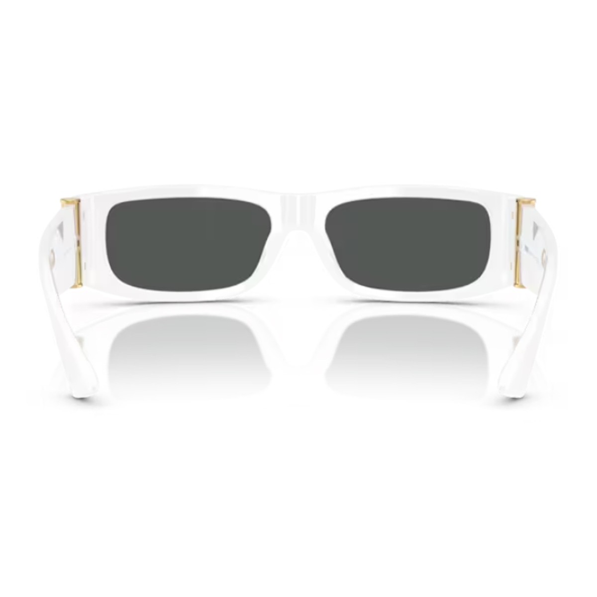 The new Versace 0VE4476U sunglasses, part of the “Medusa Glam” line, combine clean lines and iconic details in a sophisticated, modern design. Featuring a compact, rectangular profile, the model is crafted entirely from white acetate and paired with dark grey lenses. The temples are embellished with a Medusa stud and an elegant gold-tone column detail—iconic symbols of Versace’s style that add a refined and bold touch to the overall look.