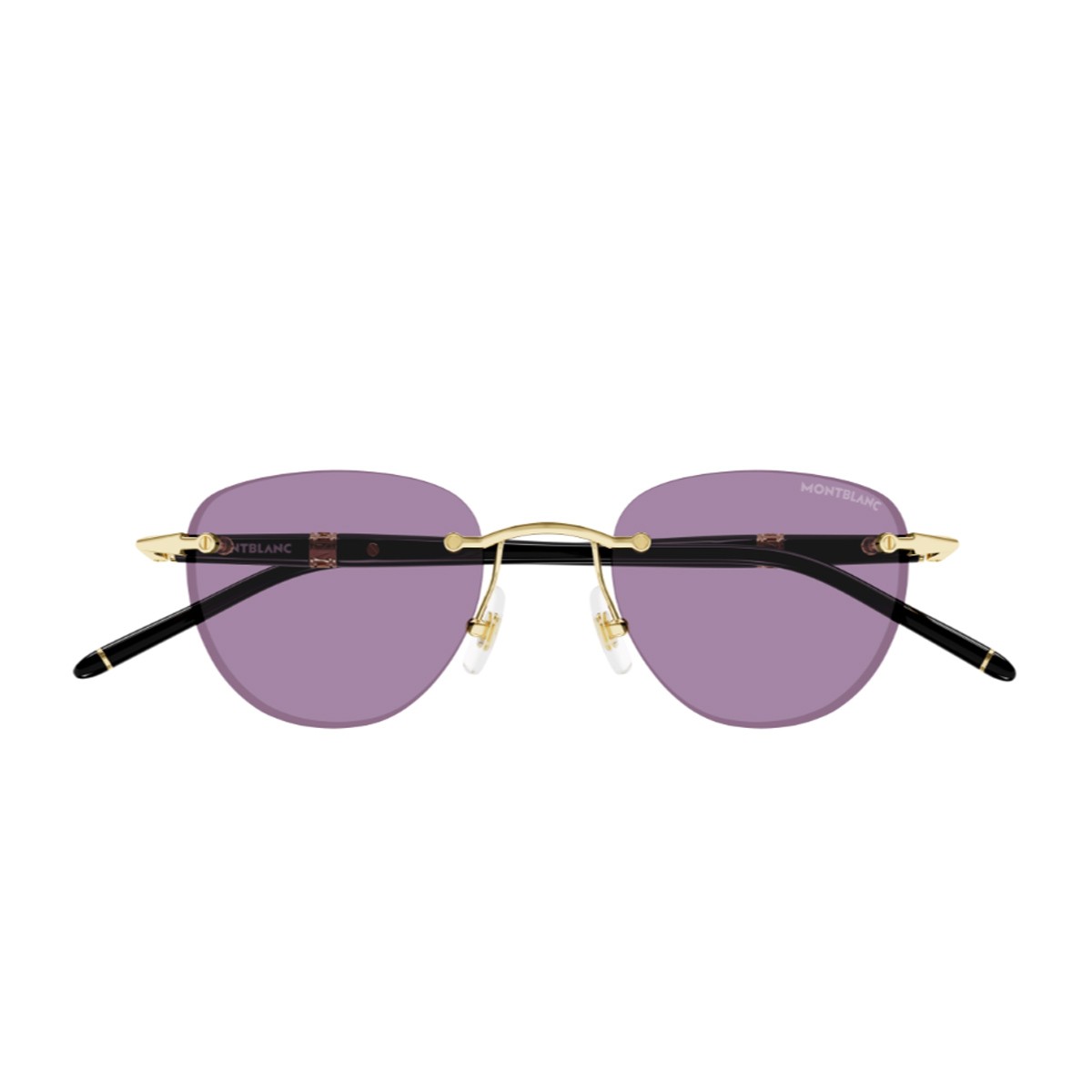 The new Montblanc MB0412S sunglasses from the Meisterstück line are a tribute to the timeless elegance of the Maison’s iconic writing instruments. The rimless phantos-shaped frame stands out for its refined and lightweight design, paired with thick lenses in a sophisticated light purple hue. The black injected temples are inspired by the silhouette of Meisterstück pens, while Montblanc’s signature is expressed through an elegant engraved metal ring and a subtle enamel detail on the temple tip. A model that blends tradition, innovation, and artisanal craftsmanship in every detail.