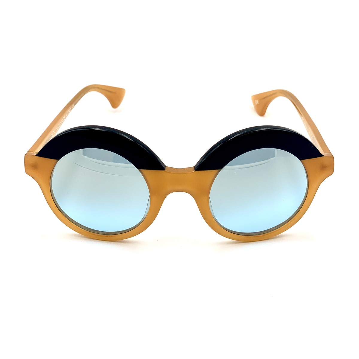 This Silvian Heach OKINAWA/S sunglasses stands out for its creativity and originality. Not a single color distinguishes the frame in Acetate, but a meeting of plates, creating an original and sophisticated play of Color. The Black Color of the ciliary gives way to the Yellow of the entire frame. The lenses are shaded, in shades of light blue.