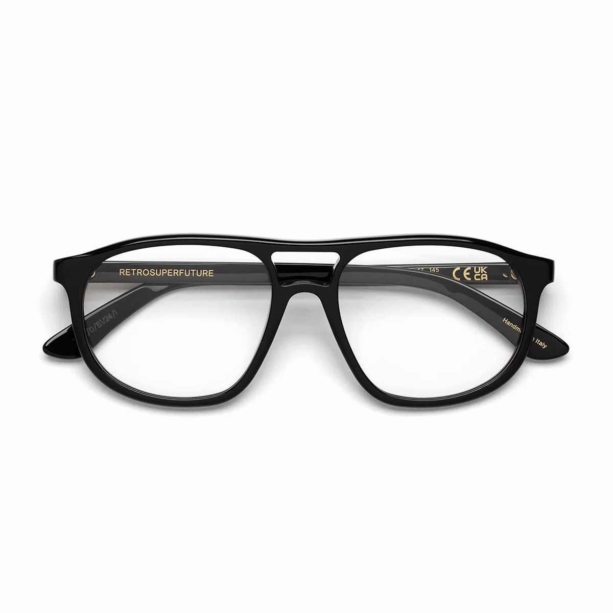 Retrosuperfuture is synonymous with innovative design and unmatched craftsmanship. The NUMERO 127 model is the optical frame that combines elegance and comfort in a single accessory. The glossy black acetate frame with a pilot shape and double bridge features a clean, modern design, giving it a refined and versatile look. Perfect for those seeking a sophisticated style that’s suitable for any occasion.