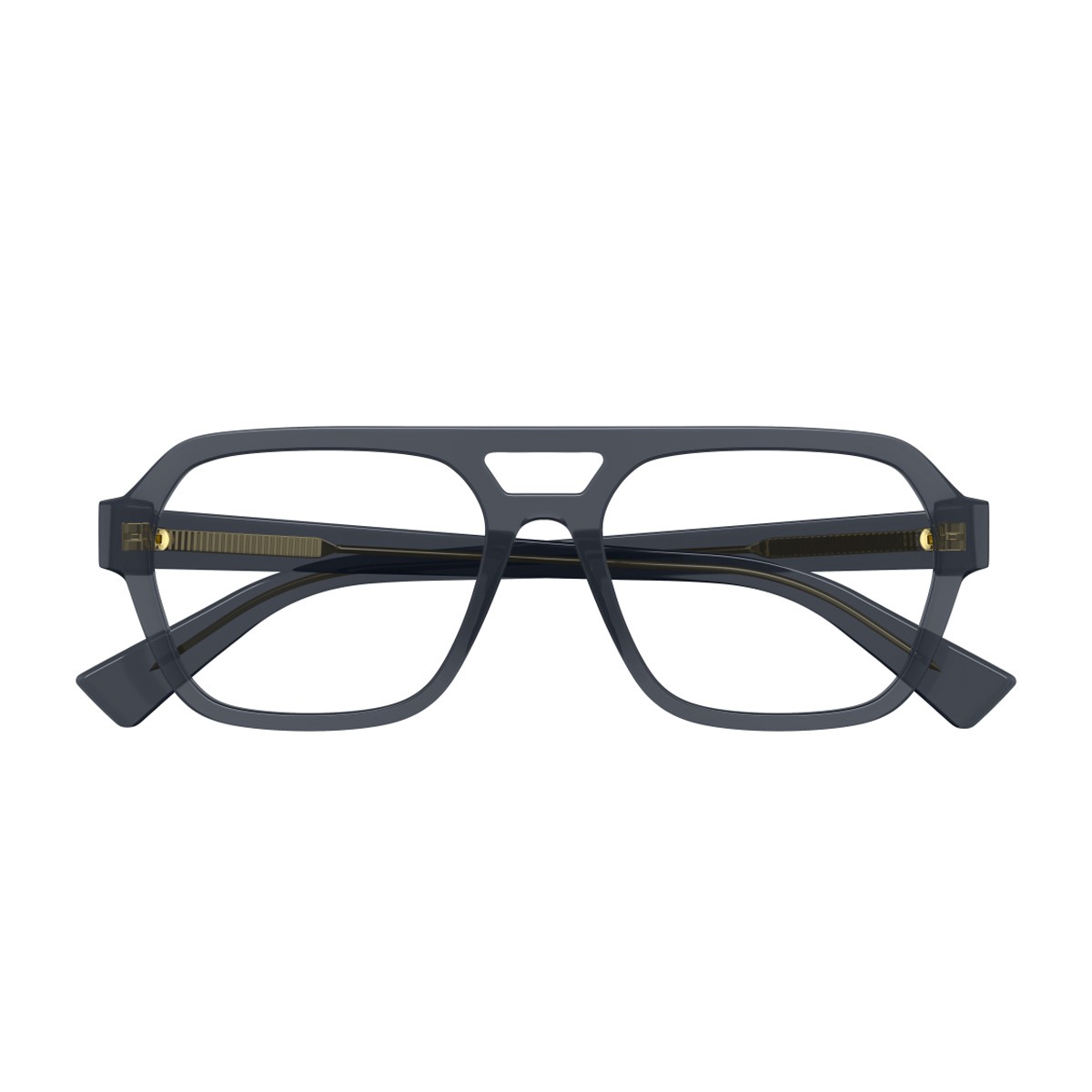 The Bottega Veneta BV1336OA optical frame, part of the New Classic Collection, represents a perfect balance between minimalist design and sophisticated elegance, embodying the Maison’s authentic and refined essence.The transparent grey acetate frame, inspired by vintage aesthetics, features a soft caravan shape with timeless appeal, enhanced by a double bridge that adds both balance and character to the design.The temples are adorned with Bottega Veneta’s iconic metal triangular studs, a distinctive symbol of the brand’s aesthetic language, and the engraved logo in refined lettering, expressing a sense of understated and contemporary elegance.