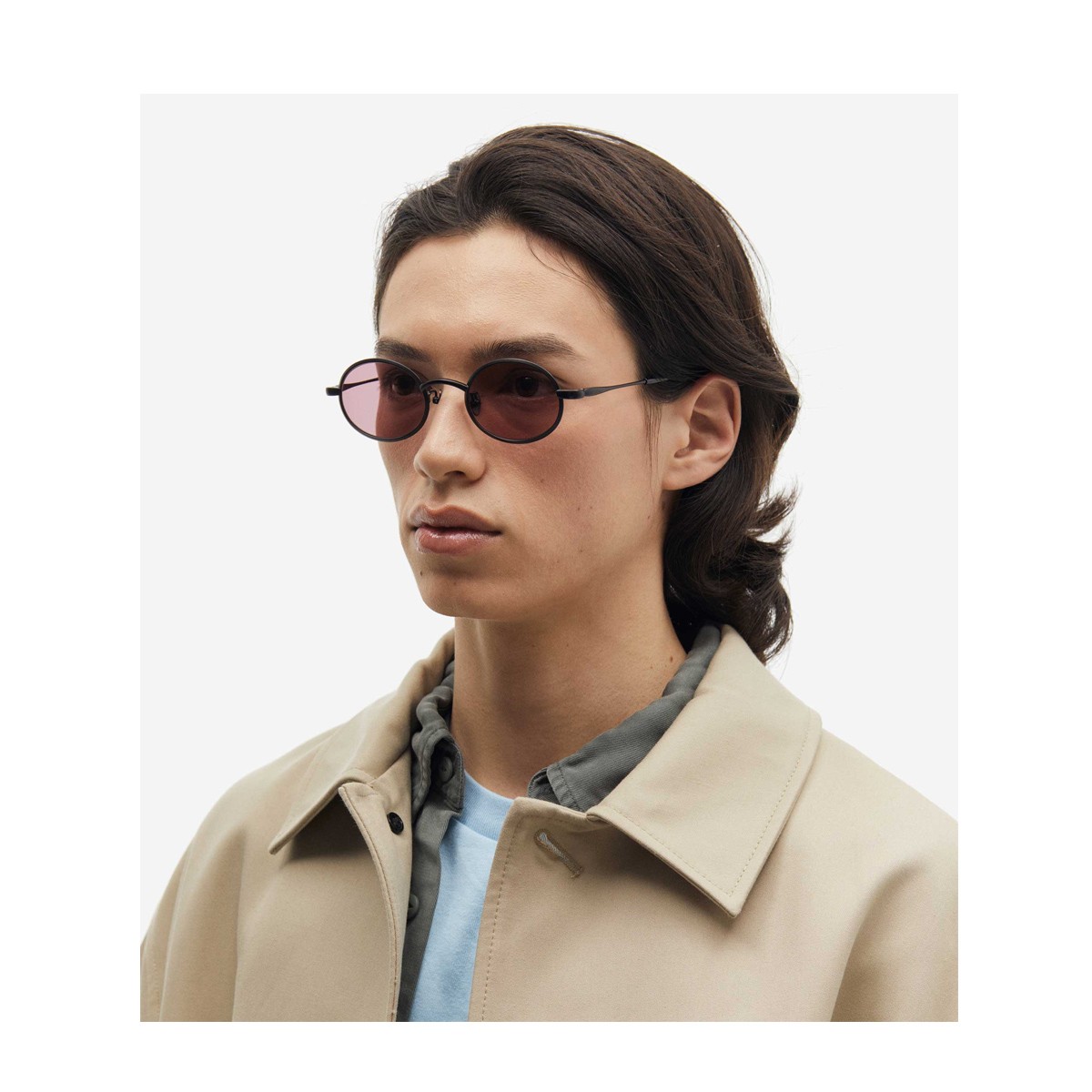 PROJEKT PRODUKT is a Korean brand with a modern, minimal, and elegant design, born from the fusion of customer needs and designer vision. Using high-quality materials, it launches new collections each year that reflect its sophisticated and exclusive essence. The CLCC7 sunglasses model stands out for its iconic design, featuring unique and structured lines. The oval-shaped frame, crafted from satin black titanium, is paired with pink-toned lenses, creating a perfect balance between elegance and modernity. The voluminous metal rims and refined end-pieces add a touch of originality, enhancing every detail with sophistication.