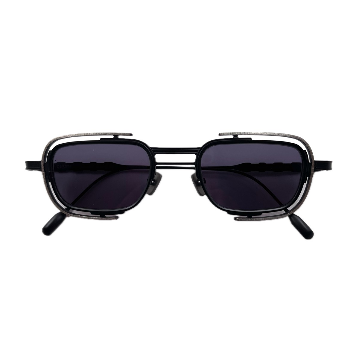 CAPOTE redefines the boundaries of personal expression, turning every frame into a true style statement. The 226AC model features an avant-garde design with thin double-structured temples, a straight bridge, and an elongated rectangular silhouette enhanced by refined silver metal details. Crafted from black titanium and paired with grey-tinted lenses, it embodies a perfect balance of elegance, character, and originality.