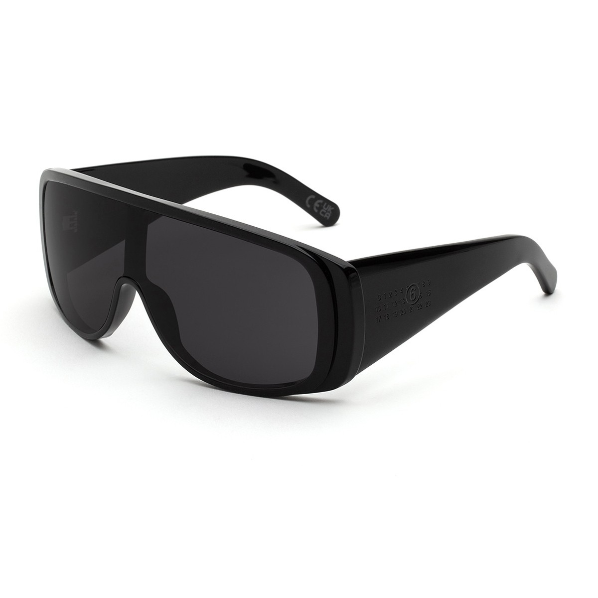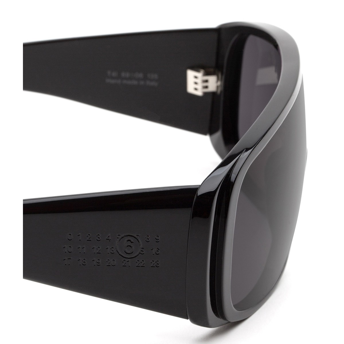 This exclusive partnership between Retrosuperfuture and Maison Margiela, the renowned French luxury fashion house, has given life to a truly unique pair of sunglasses: the MM6 Mask model.An innovative design meets Italian craftsmanship, transforming this accessory into a true style statement. The black acetate frame pairs perfectly with the dark gray lenses, creating a dynamic and contemporary look.The iconic mask silhouette embraces the gaze with clean, futuristic lines, while the engraved numeric logo on the temples subtly reflects Maison Margiela’s unmistakable DNA.