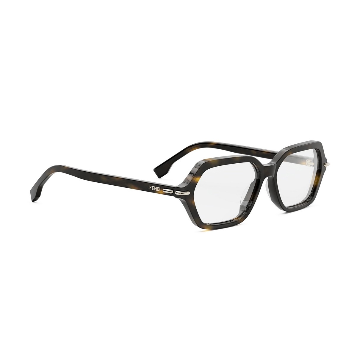 The new FE50125I optical model from the Fendi Selleria line features an on-trend geometric shape. Fendi’s signature elegance is conveyed through the subtle logo and the iconic Selleria stitching, carefully reproduced on the temples.