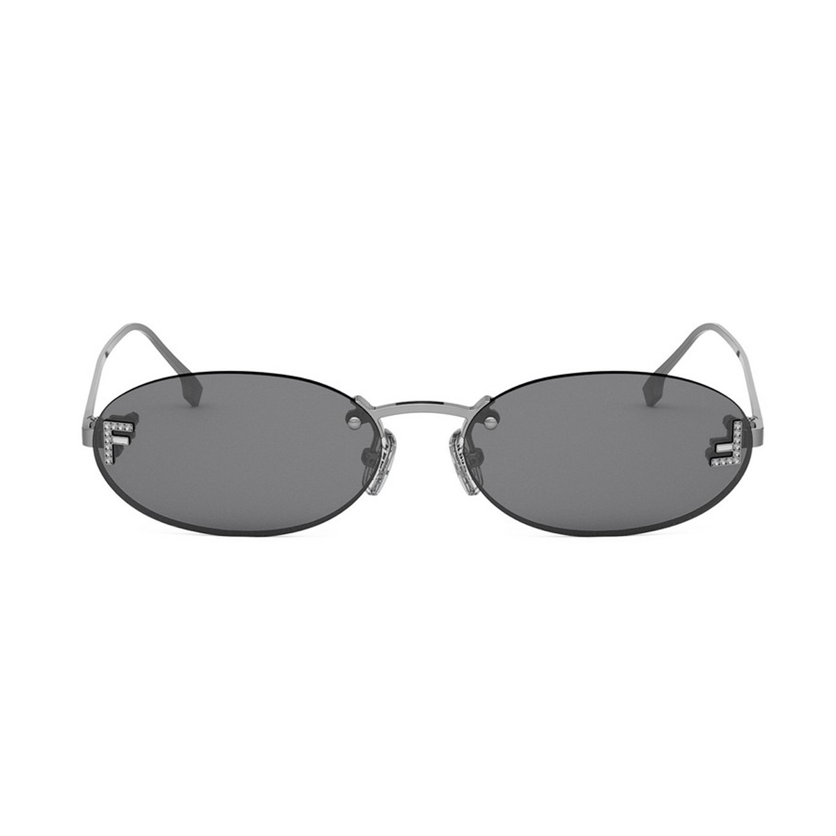 FENDI's best selling model refreshed in trendy and statement colors. 90s inspired oval rimless frame featuring the "FF" crystals logo on both sides of the lenses for a trendy flair.