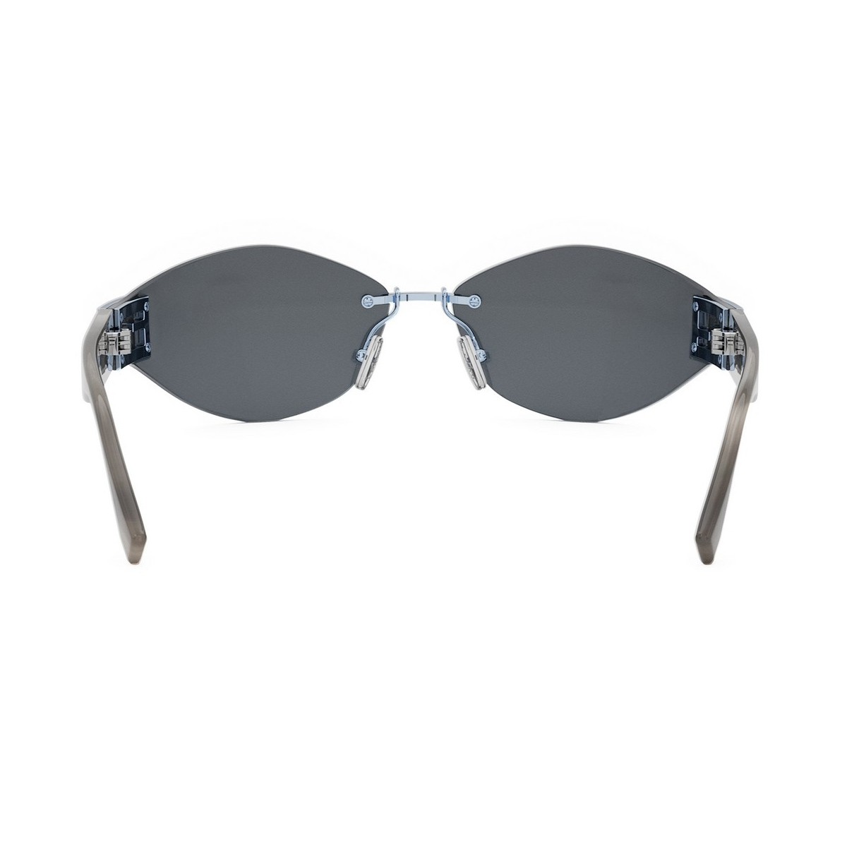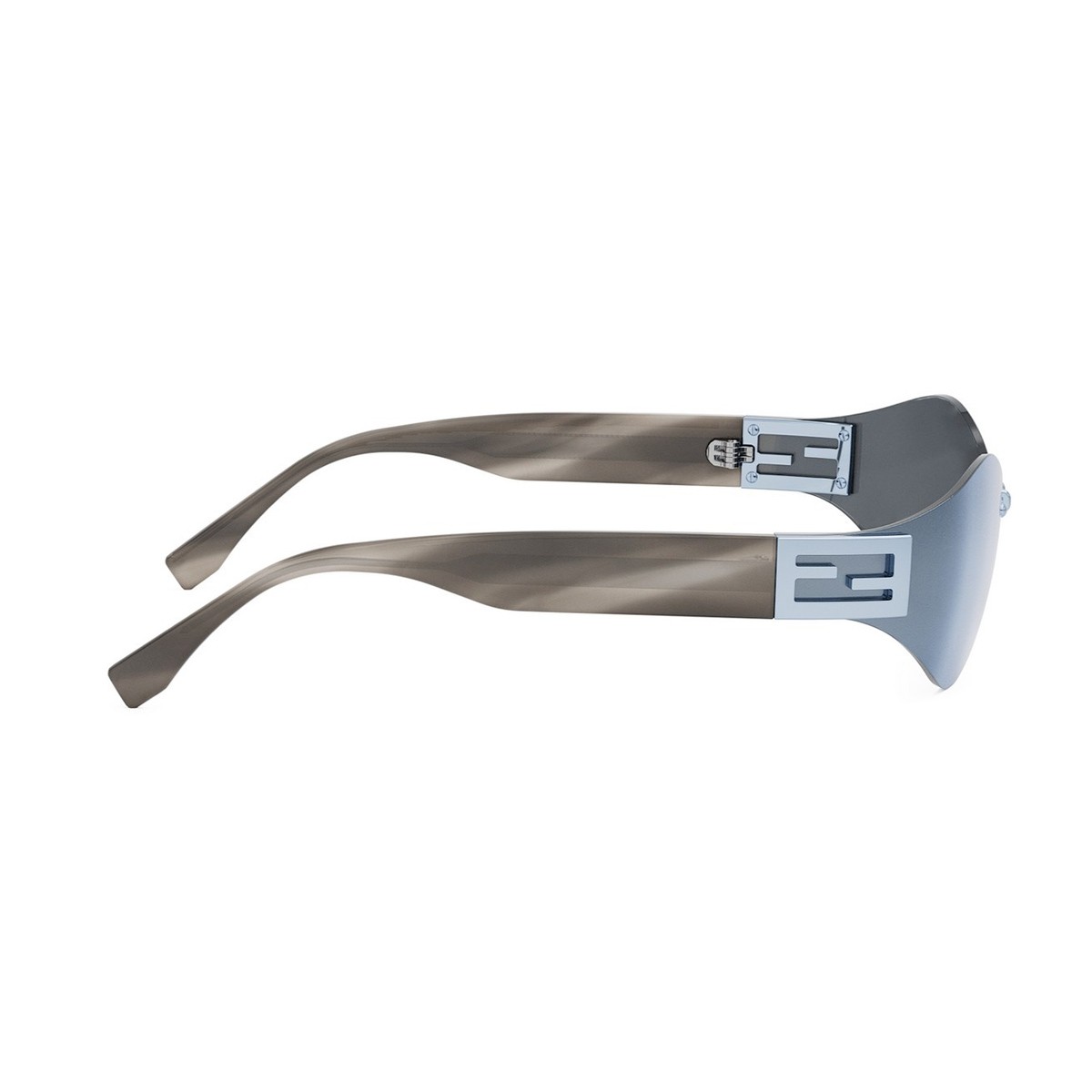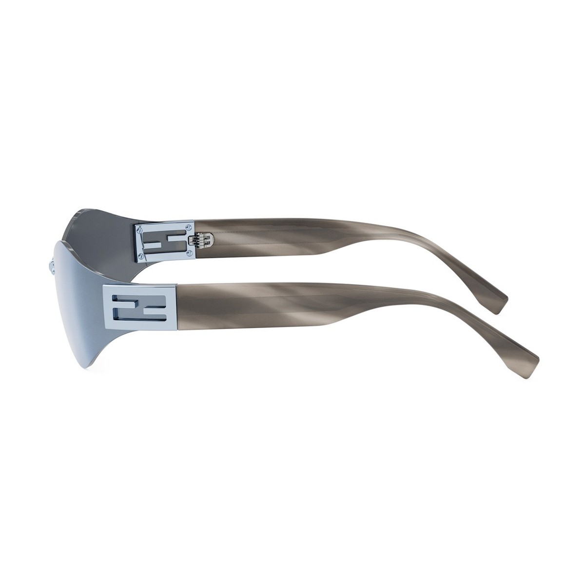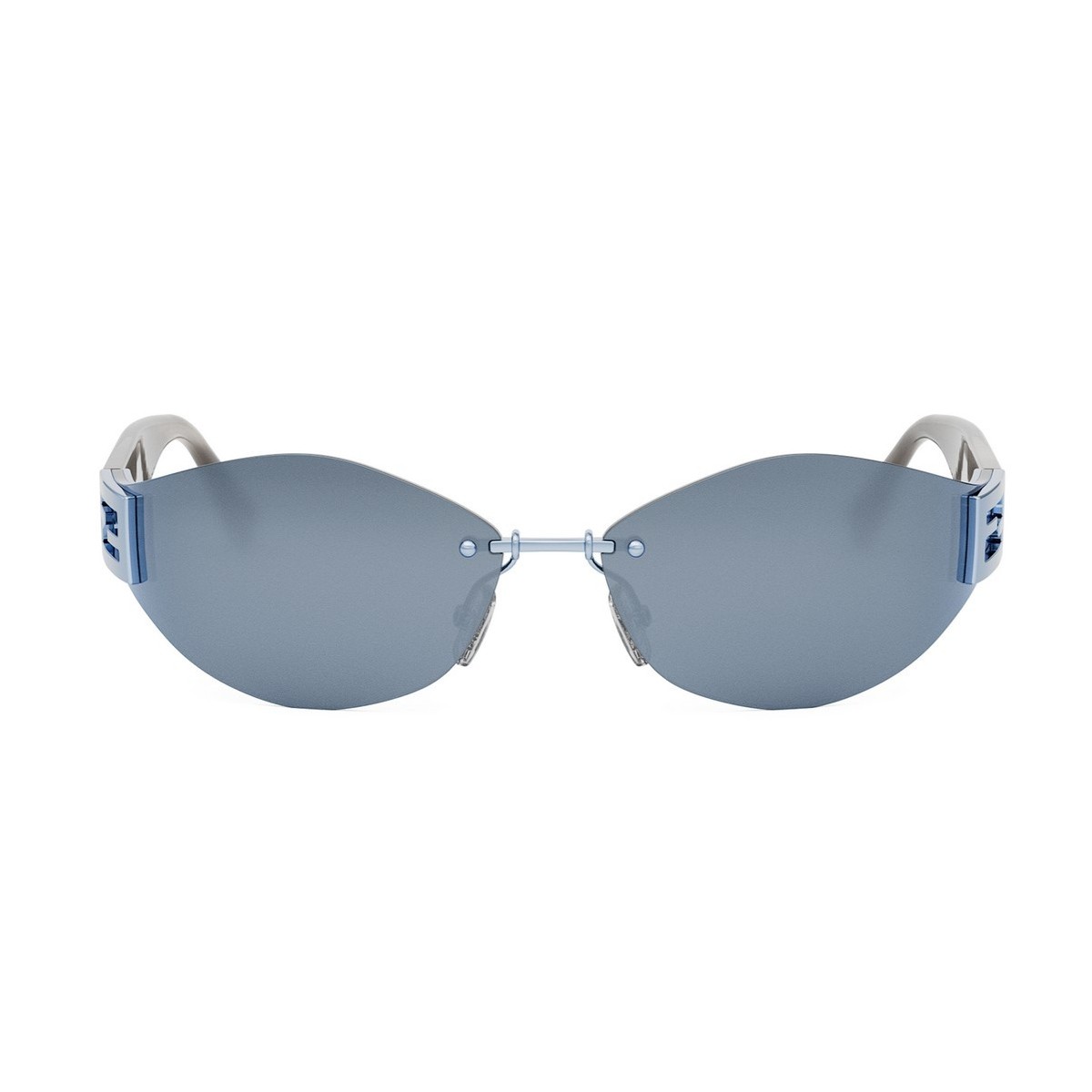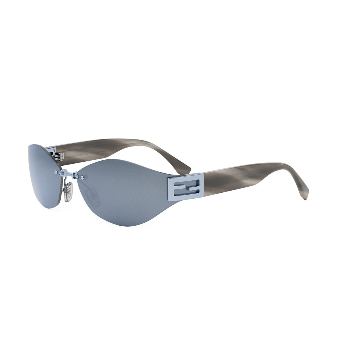 An evolution of the iconic Baguette family, featuring the famous Baguette logo on the side. Inspired by vintage Fendi eyewear, this model blends modernity with retro style through rimless wraparound lenses seamlessly connected to acetate temples.