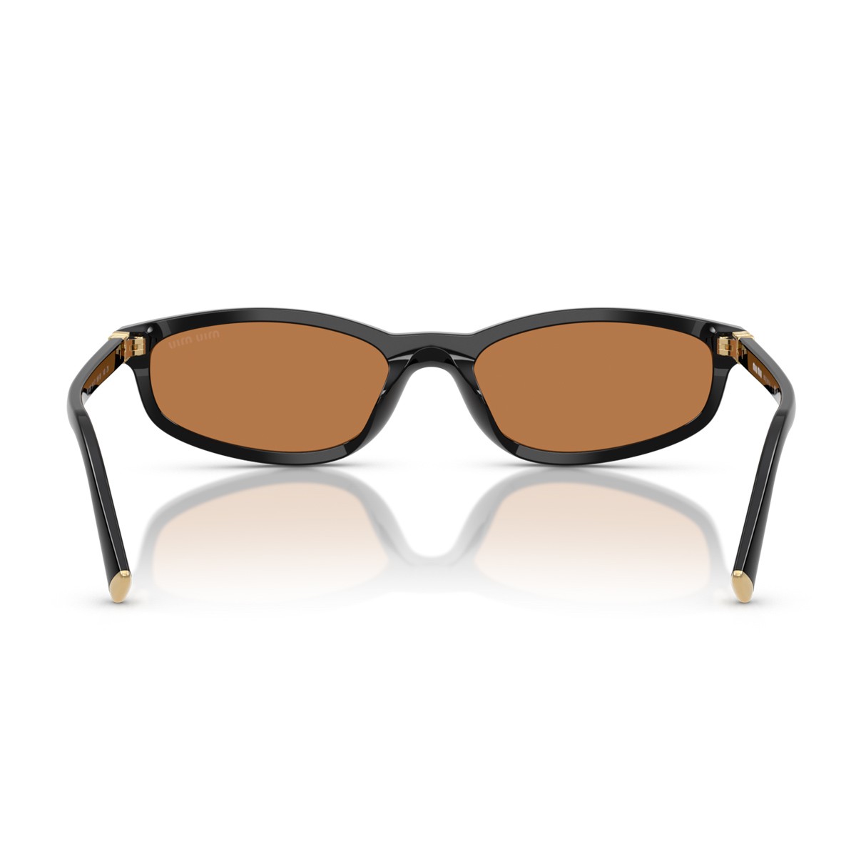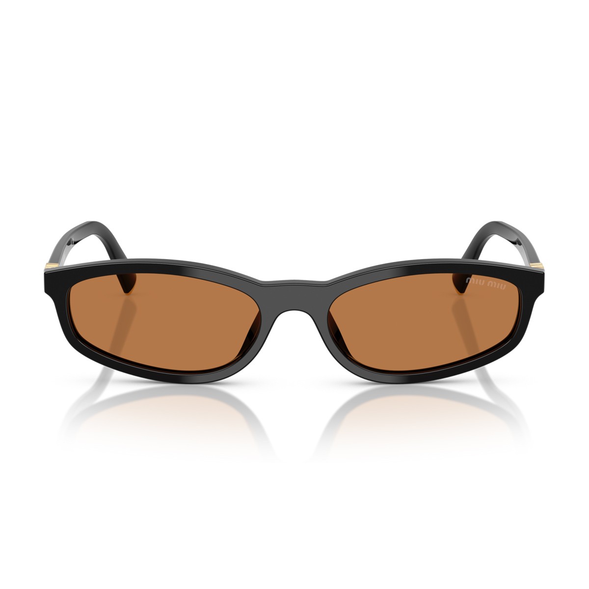 The new 0MU A06S sunglasses model represents a perfect fusion of modern design and Miu Miu’s timeless allure. The frame, crafted from black acetate, features a slim and lightweight geometric shape, paired with brown tinted lenses. The design is enhanced by temples adorned with the unmistakable vertical metal logo, seamlessly integrated into the hinge—an elegant synthesis of style and functionality.