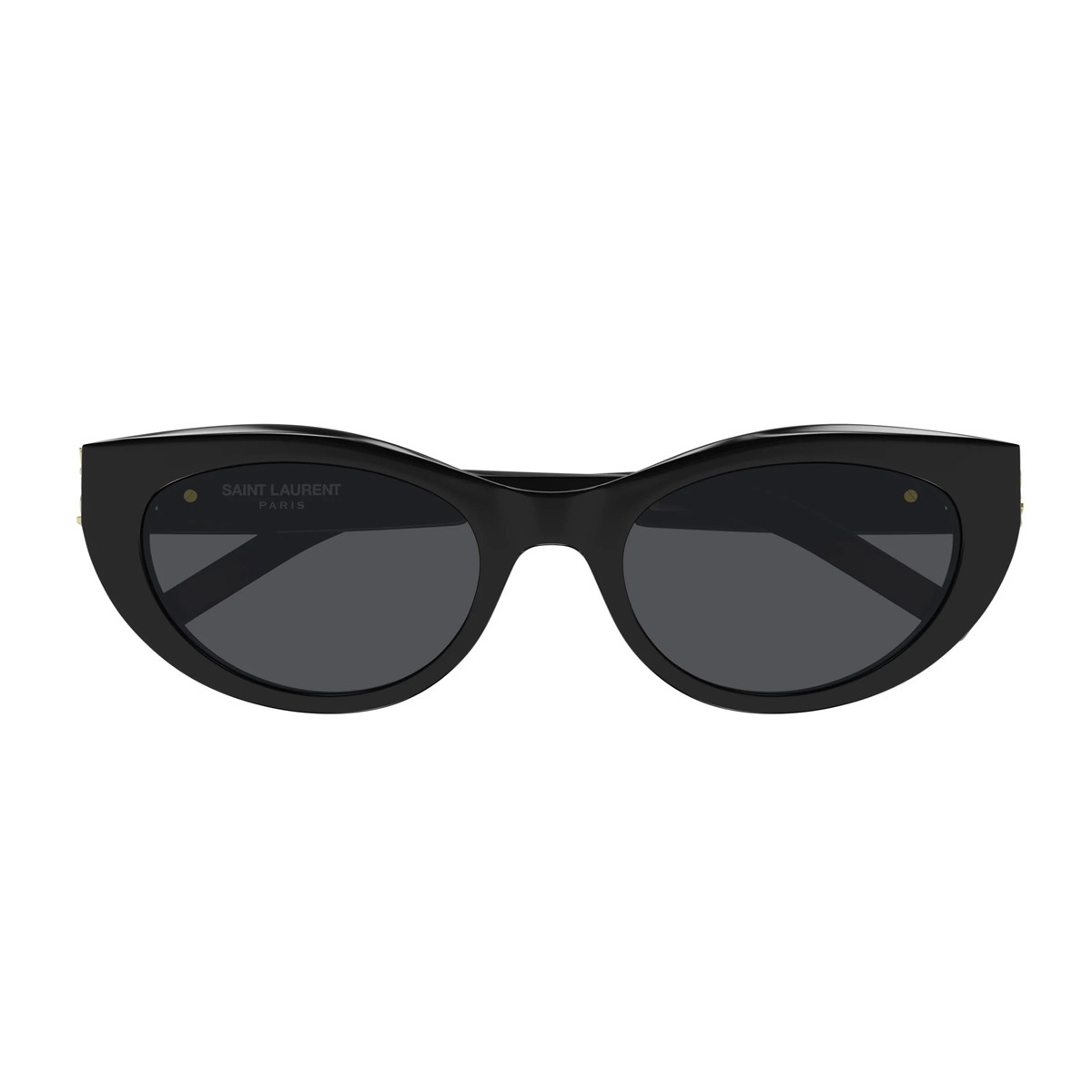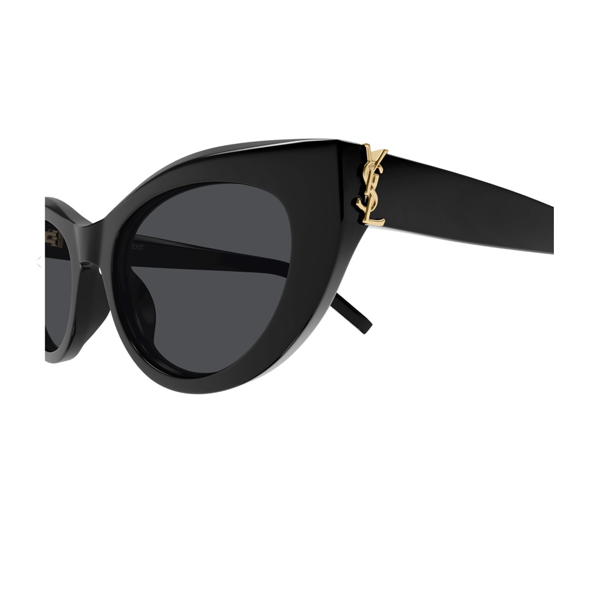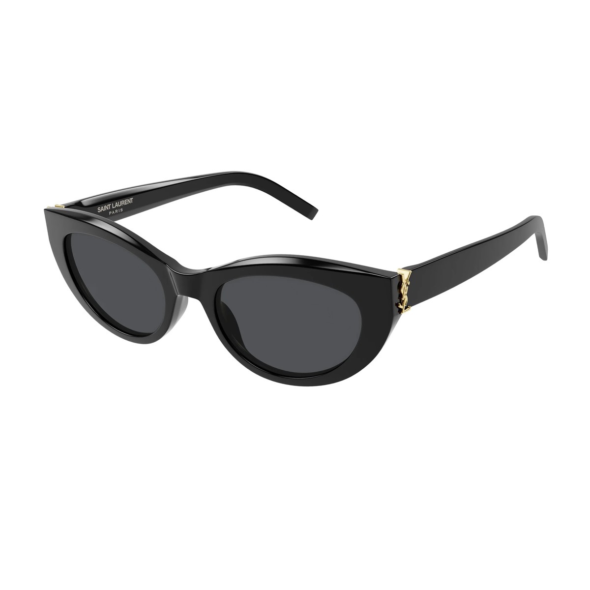 The new SL M115 sunglasses from the Monogram line reinterpret the iconic cat-eye shape in an even more contemporary and on-trend version.The slim, feminine frame is crafted entirely from black acetate and paired with dark grey polarized lenses, offering both style and protection. The temples are adorned with the iconic YSL Monogram logo—a timeless symbol of elegance and distinction.