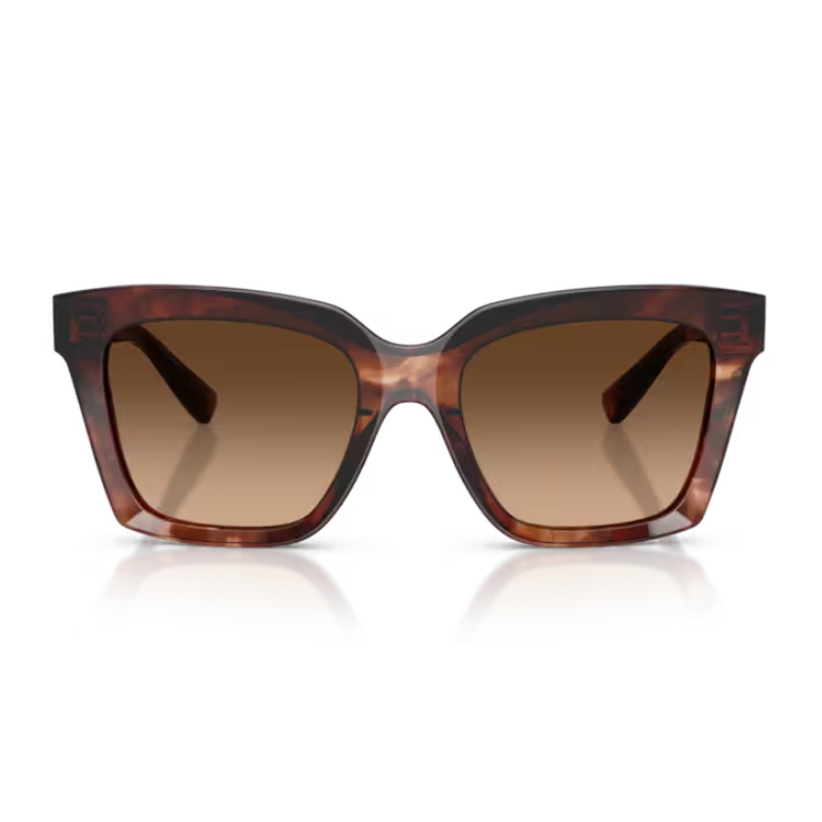 The DG4498 model from the DG HINGE collection combines timeless elegance and contemporary style in a unique and refined design. The square frame in dark red Havana acetate, with a retro allure, is enhanced by a subtly faceted front that adds character and personality. The brown lenses complete the look with a sophisticated touch, providing both protection and comfort. The bold temples, adorned with the iconic intertwined DG logo visible