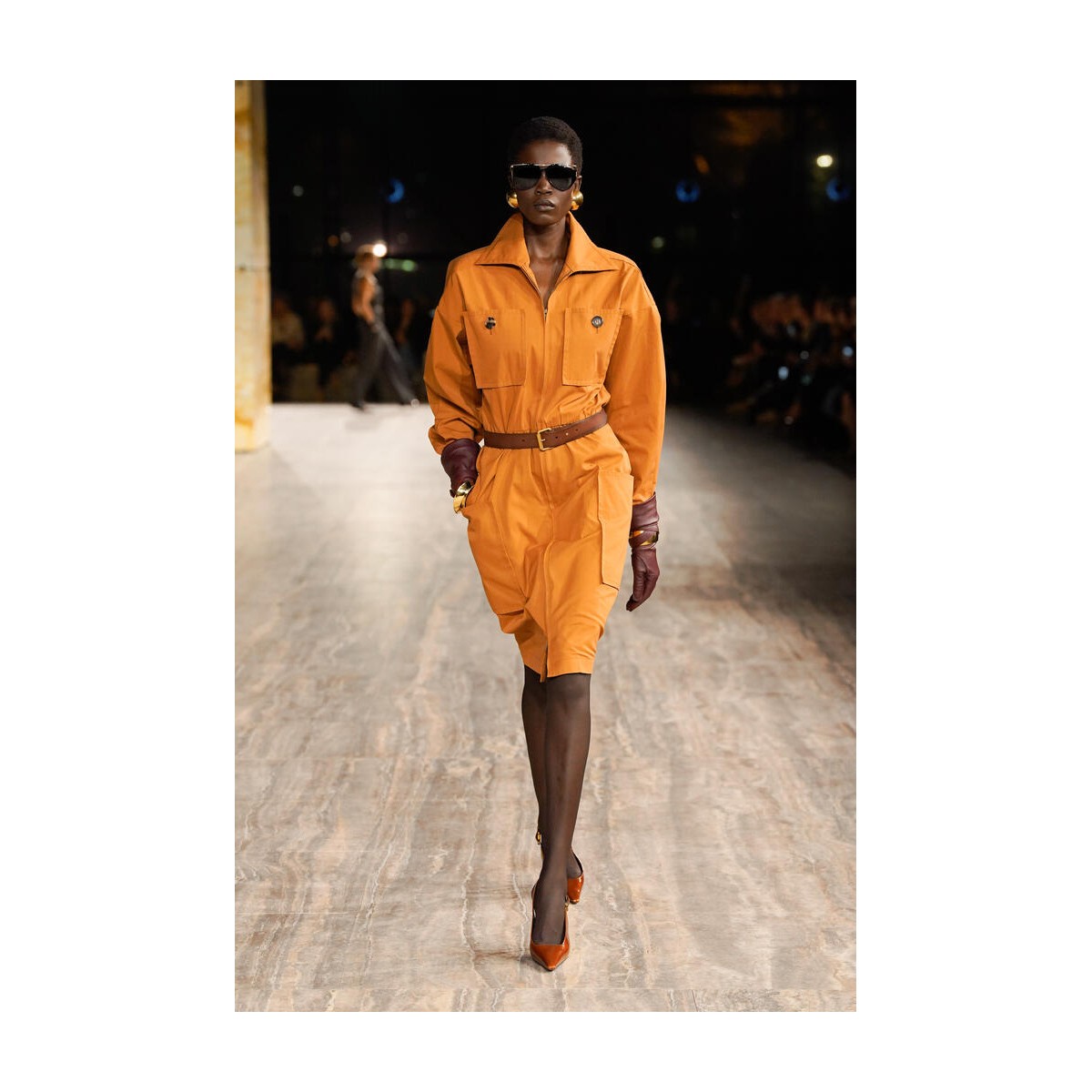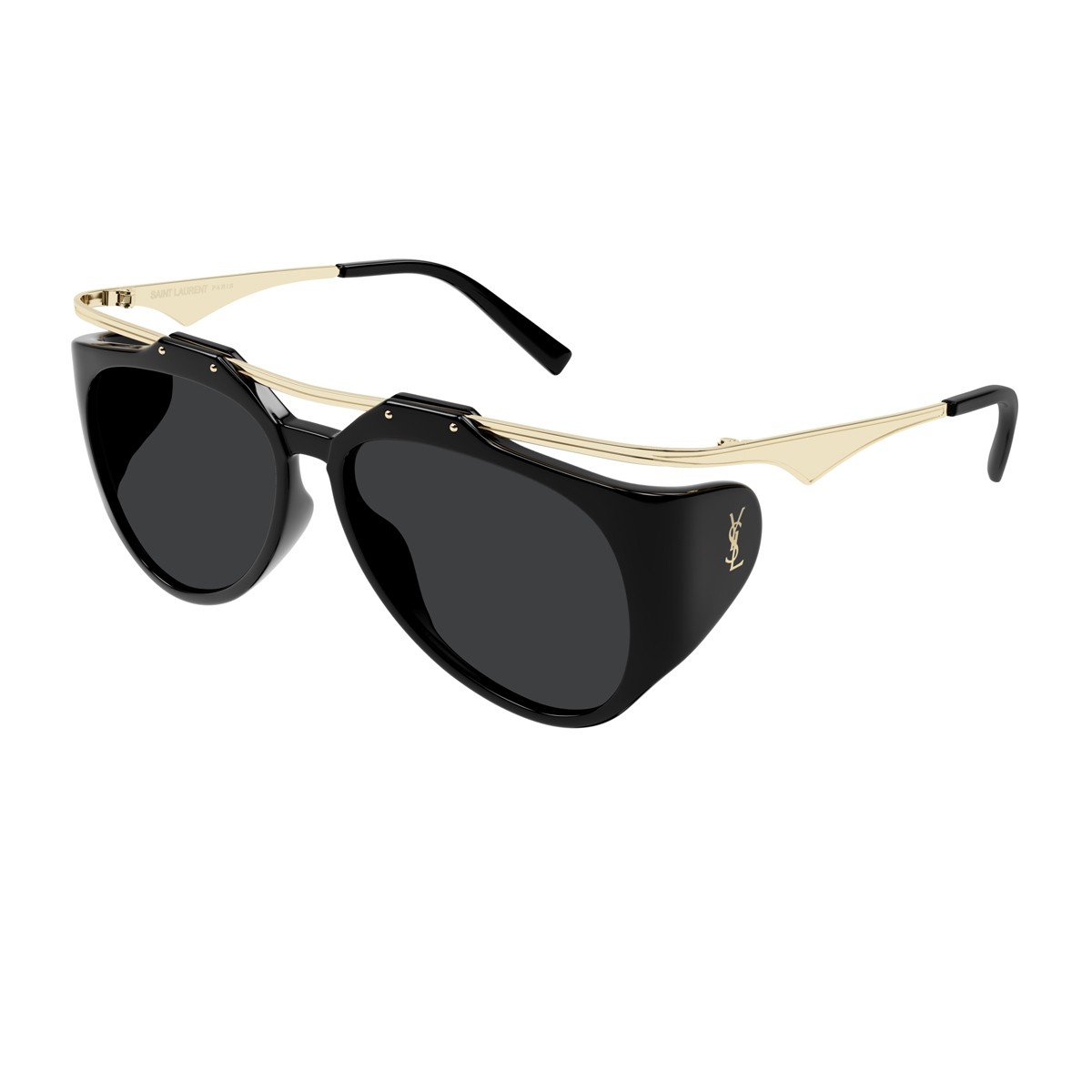 La collezione Primavera Estate 2024 di Saint Laurent, firmata da Anthony Vaccarello, celebra un ritorno al glamour degli anni '80. Gli accessori sono il fulcro dell'essenza di quell’epoca e gli occhiali da sole aviator si distinguono per il loro forte impatto visivo. Tra questi, spicca il modello SL M137 AMELIA, protagonista della sfilata ed autentica icona di stile: una montatura aviator in acetato nero con lenti scure, completata da una barra superiore in metallo dorato e da un elegante effetto floating delle lenti.