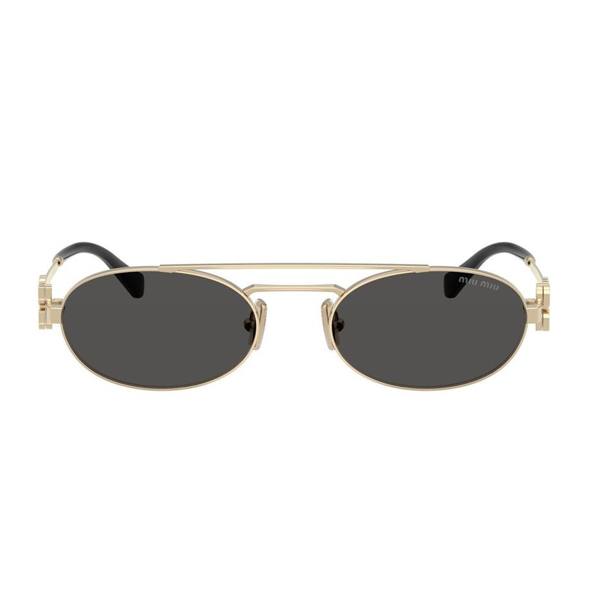 Il nuovo modello 0MU 54ZS della linea Miu Miu Logo si distingue per una montatura ovale in metallo color oro dal fascino vintage, abbinata a lenti sui toni del grigio scuro. Il design è arricchito da un raffinato doppio ponte e dall’iconico logo verticale Miu Miu inciso sulle aste, che funge sia da cerniera che da dettaglio elegante, emblema della costante ricerca della perfezione in ogni dettaglio da parte della Maison.