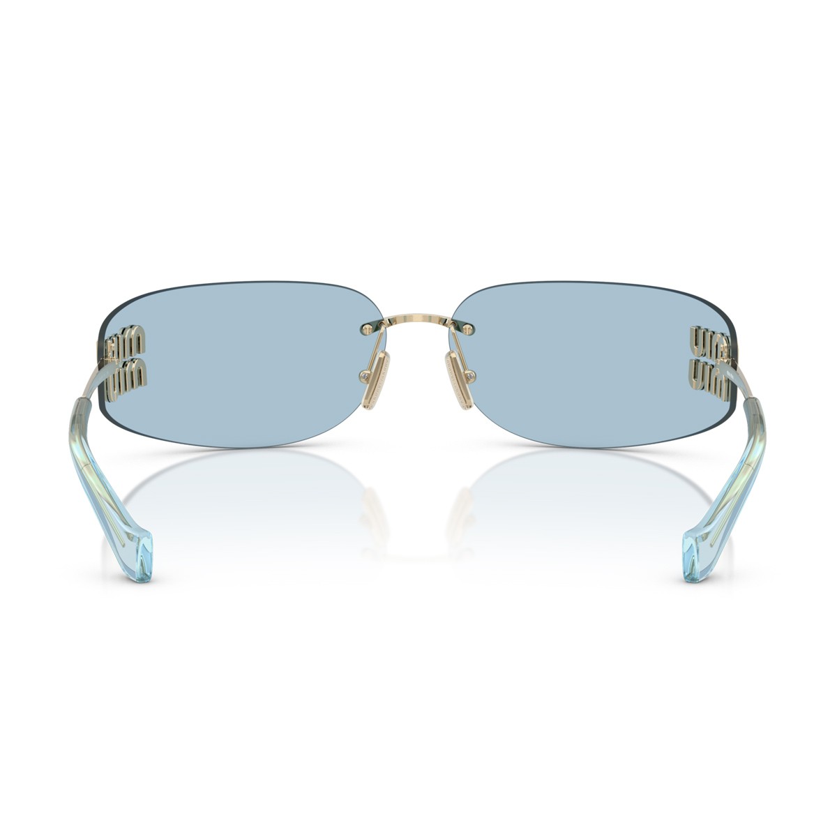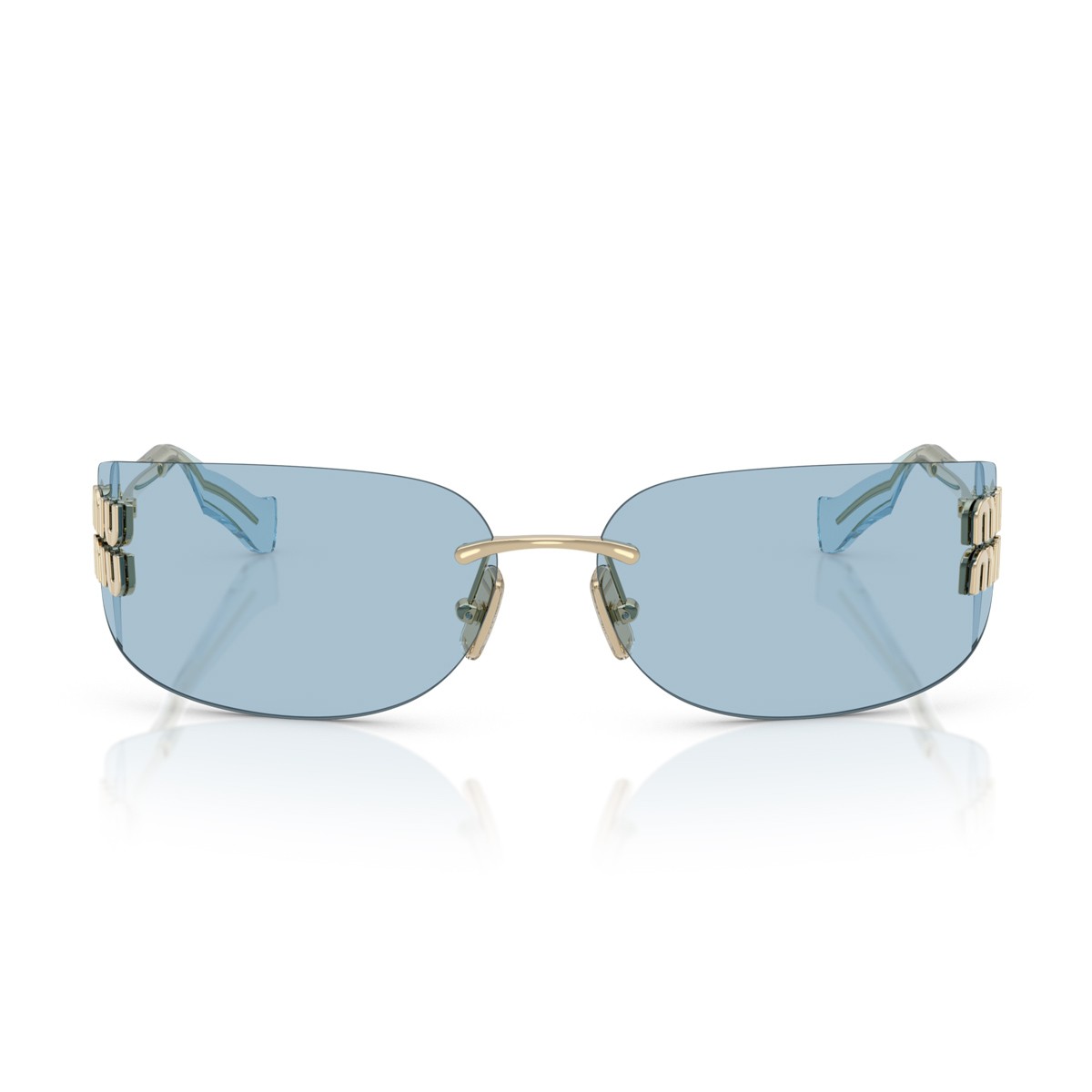 Sempre all’avanguardia nel dettare tendenze, Miu Miu reinterpreta uno dei suoi modelli da sole più iconici con una versione aggiornata e più sottile. Il nuovo modello 0MU A51S della linea Runway si distingue per la montatura ultra-leggera in metallo dorato, dalla forma avvolgente, abbinata a lenti nelle tonalità dell’azzurro chiaro. Le ampie lenti, arricchite dal logo Miu Miu in evidenza, celebrano il ritorno del deciso stile senza montatura.