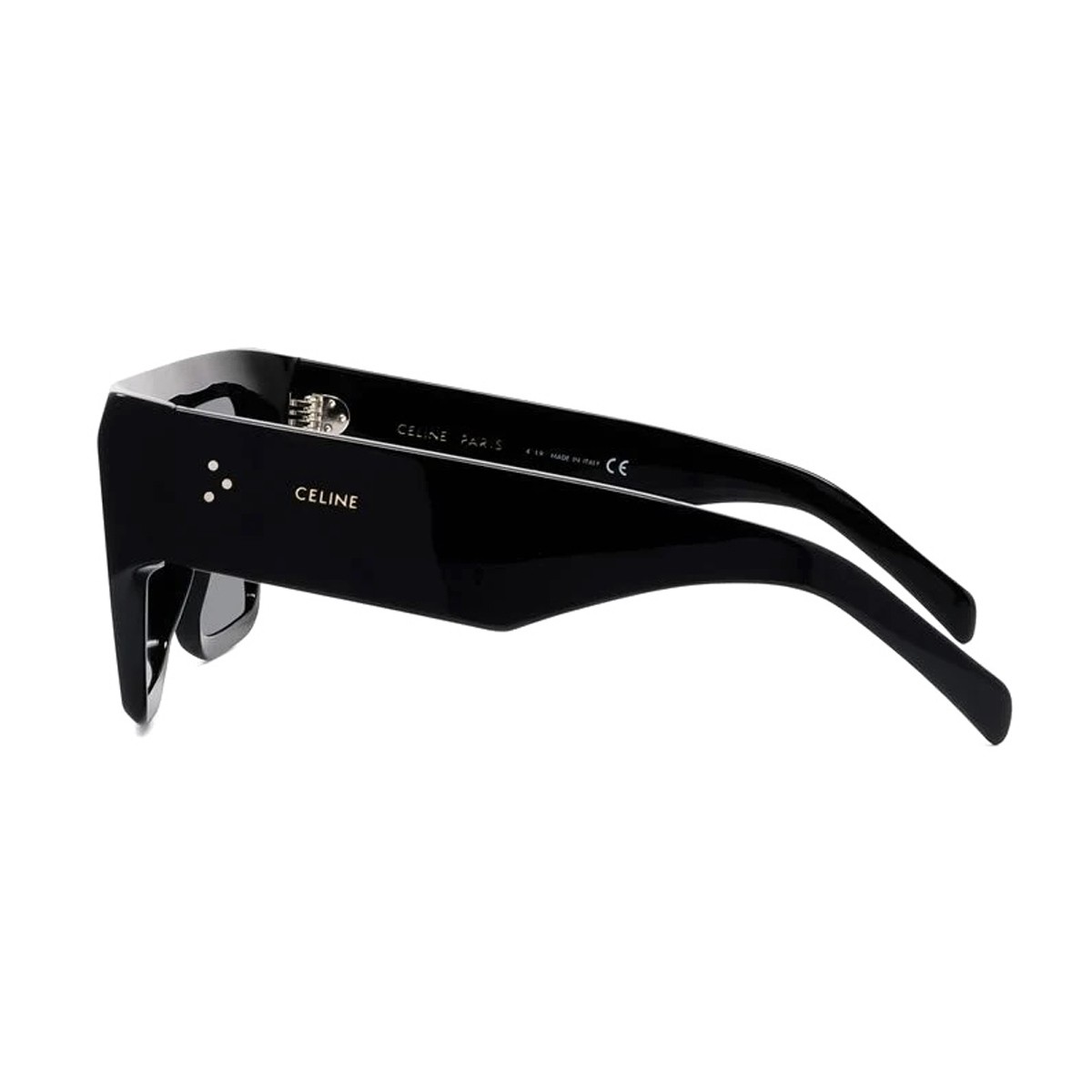 Questo modello da sole CL40092I della linea Celine 3 Dots colore, presenta una montatura a mascherina in acetato nero lucido.