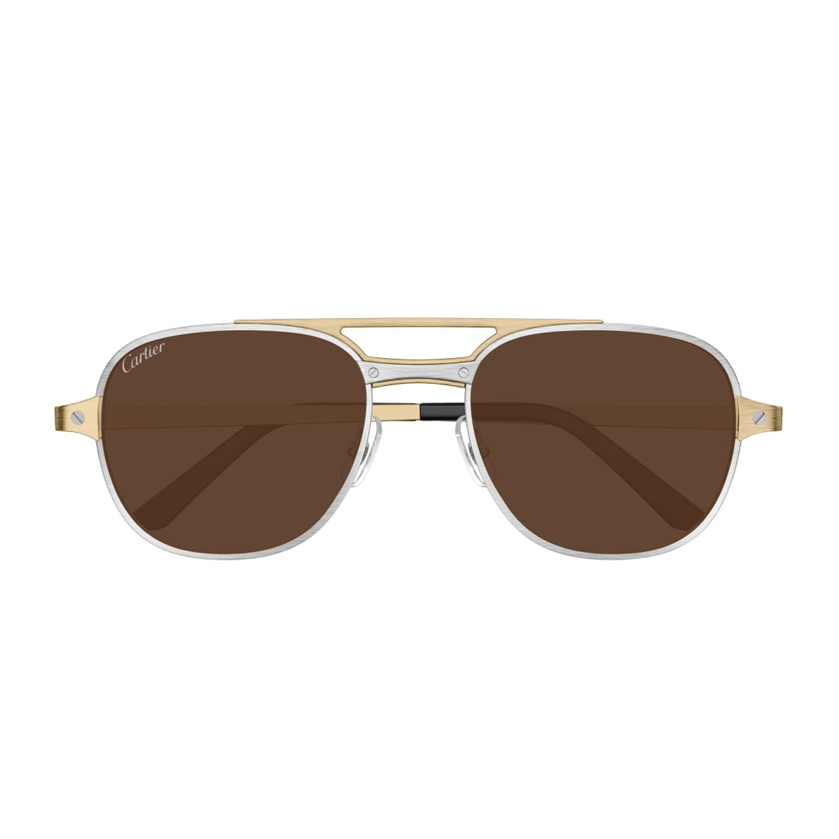 Cartier CT0477S Santos De Cartier 004 Silver Gold Brown Polarizzato
