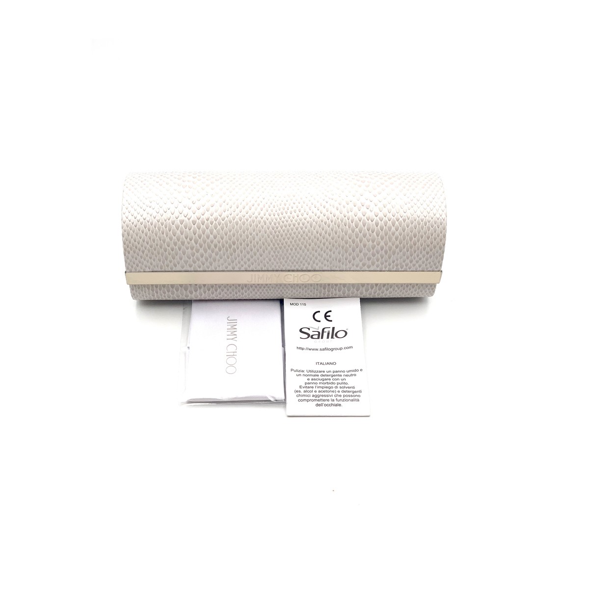 La collezione di occhiali Crystal Jewel è intrisa dello spirito giocoso e lussuoso di Jimmy Choo. Cristalli scintillanti e dettagli glitterati rendono questa vasta gamma di montature da vista immediatamente iconiche. Il profilo delle aste in metallo è realizzato con un processo di microfusione e impreziosito da tessuto glitterato e cristalli Swarovski® taglio baguette applicati a mano.