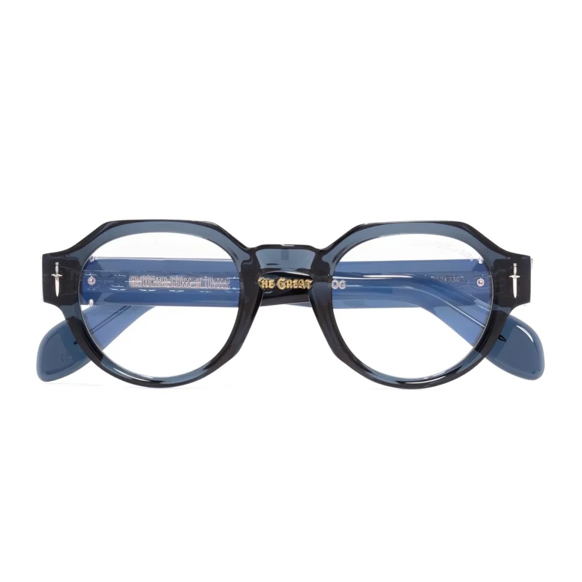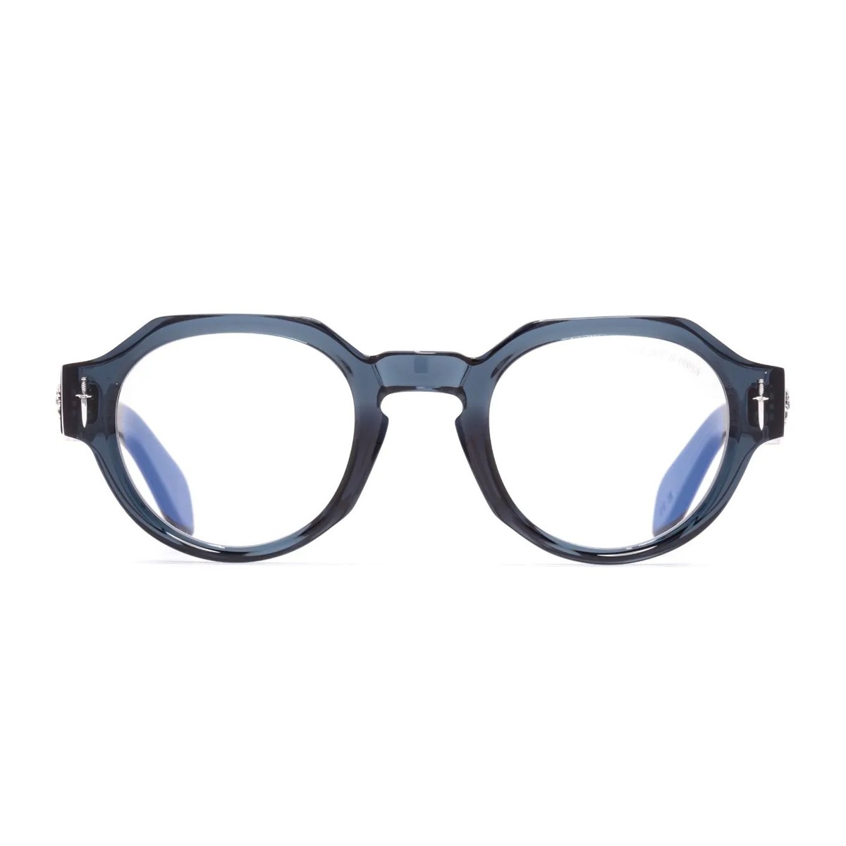Il modello da vista The Great Frog 006 di Cutler and Gross fa parte della collezione Lucky Diamond, nata dalla collaborazione con The Great Frog, storico brand londinese di gioielleria rock e biker. La montatura, realizzata in acetato, presenta una forma geometrica in un’elegante tonalità di blu, arricchita da dettagli in argento sterling a forma di pugnale sul frontale e dall’iconico emblema con teschio e ossa incrociate sulle aste. Un modello che unisce artigianalità, stile contemporaneo e spirito ribelle, riflettendo l’inconfondibile qualità di Cutler and Gross.
