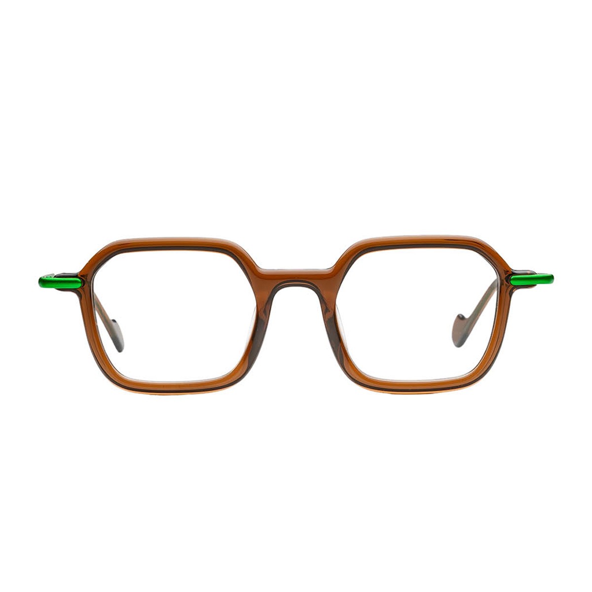 Il modello da vista Fruity di Matttew, brand belga fondato da Matthieu Duchêne , rinomato per le sue montature artigianali realizzate in Francia, unisce design innovativo e materiali di alta qualità.La montatura in acetato marrone trasparente, impreziosita da dettagli verdi brillanti, si distingue per la forma geometrica squadrata, pensata per valorizzare i lineamenti con eleganza e personalità. Le aste sottili in acciaio verde fluo aggiungono un tocco contemporaneo e luminoso, assicurando al tempo stesso leggerezza, stabilità e comfort durante tutto il giorno.